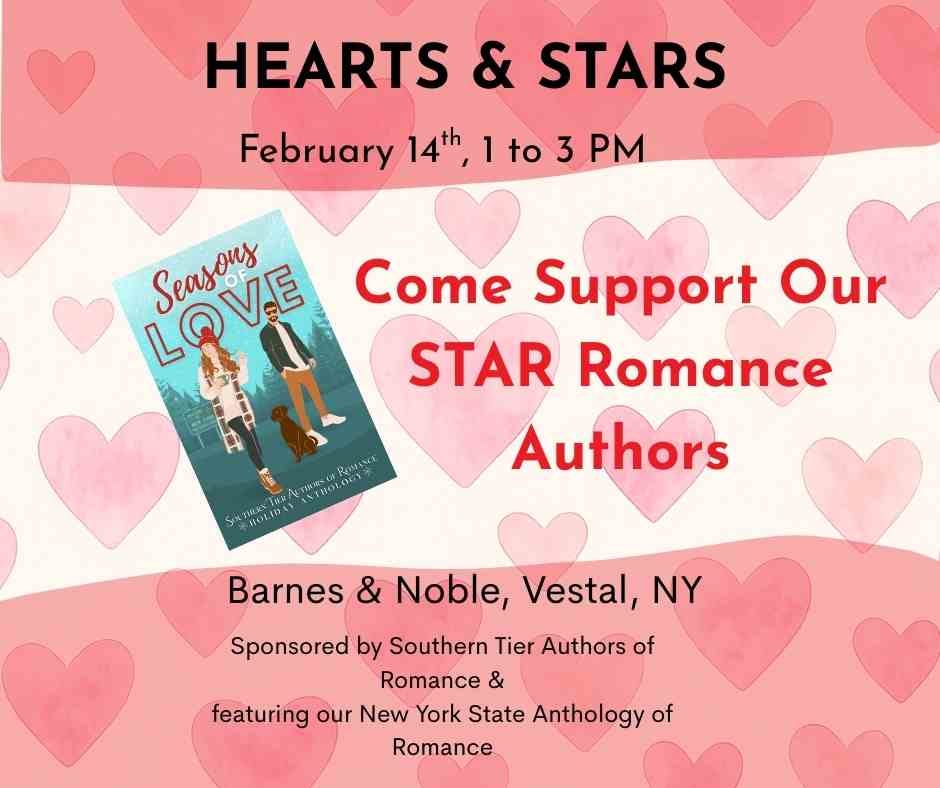 Lore and Shannon do! They have two events tomorrow—they start at Vestal, NY’s Barnes & Noble at 1 p.m. for Hearts and STARs along with other members of RWA’s Southern Tier Authors of Romance chapter. They’ll only be there briefly, but the other awesome authors will be there until 3 p.m.